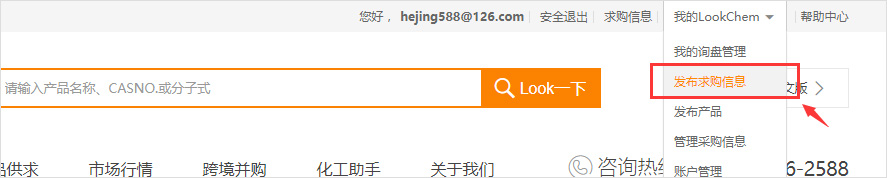 1、打開(kāi) m.laketravismountaintoplodge.com 點(diǎn)擊頂部右側(cè)“我的Lookchem”中的“發(fā)布求購(gòu)信息”