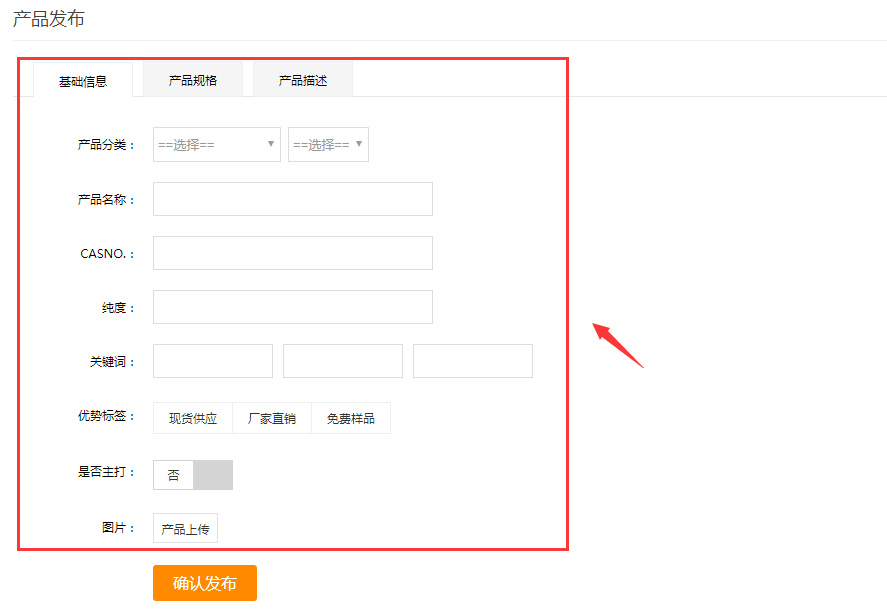 2、進入發(fā)布產(chǎn)品頁面,填寫相關(guān)產(chǎn)品信息,點擊確認發(fā)布,發(fā)布成功!