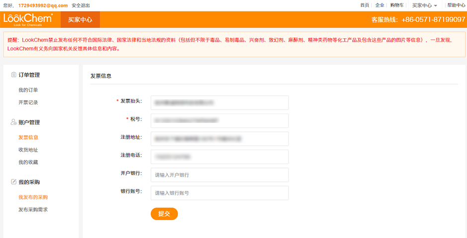lookchem商城所售的產(chǎn)品,都可開具發(fā)票,會(huì)提供“增值稅普通發(fā)票”和“增值稅專項(xiàng)發(fā)票”供客戶選擇。