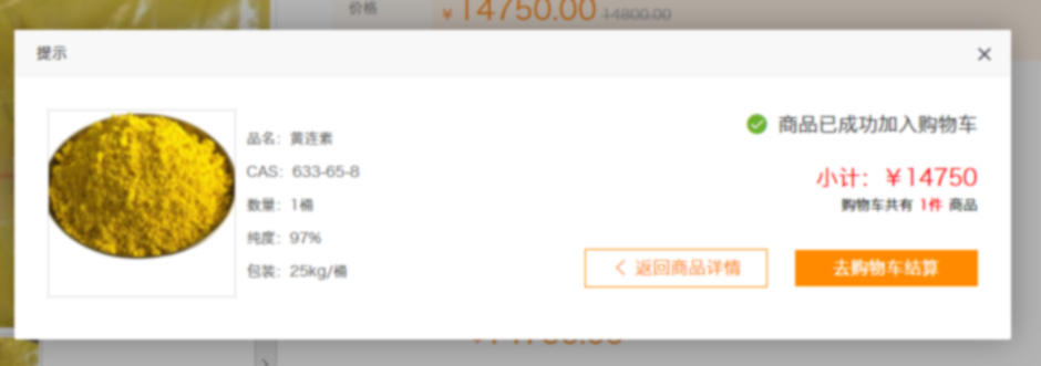 2、出現(xiàn)如下頁面后,如無需購(gòu)買其他產(chǎn)品,選擇去購(gòu)物車結(jié)算,可進(jìn)入結(jié)算頁面;如需購(gòu)買其他,選擇返回商品詳情。