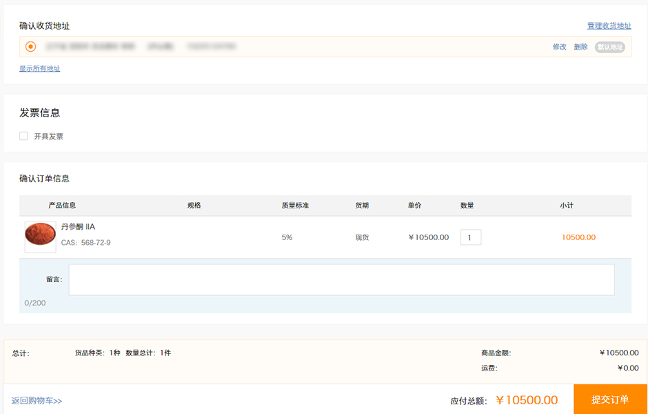 1、在訂單頁面填好收貨地址及發(fā)票信息
